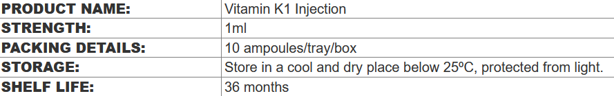 • Active Ingredients:Vitamin K1