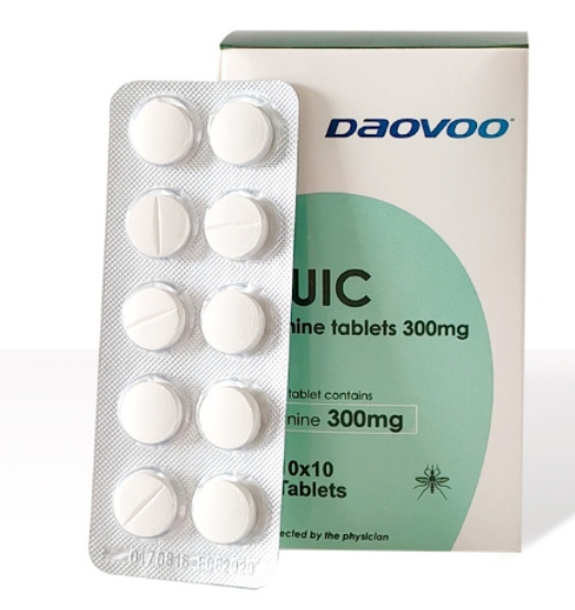 Initial IV quinine → switch to oral tablets (same dose) when tolerated.