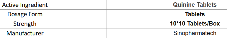 For malaria only; not approved for leg cramps due to life-threatening side effects.